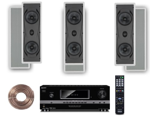 Sony HD Digital Cinematic Sound 700 Watts 7.1 Channel 3D A/V Receiver + Yamaha Natural Sound Custom Install In-Wall 2-Way 150 watts Speaker (Set of 3) with 1" Titanium Dome Swivel Tweeter & Dual 6-1/2" Kevlar Cone Woofers + 100ft 16 AWG Speaker Wire