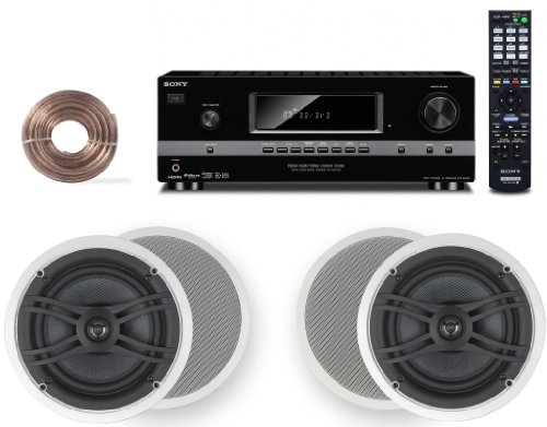 Discounted now on Sony HD Digital Cinematic Sound 700 Watts 7.1 Channel 3D A/V Receiver + Yamaha Natural Sound Custom Install In-Ceiling 2-Way 120 watts 2 Speaker Set (Pair) with 1" Tweeters & 8" Woofer + 100ft 16 AWG Speaker Wire. Get special price and save more