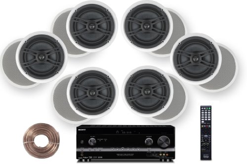 Sony HD Digital Cinematic Sound 735 Watts 7.1 Channel 3D A/V Receiver with iPhone & iPod Playback + Yamaha Natural Sound Custom Install In-Ceiling 2-Way 120 watts Speaker (Set of 6) with 1" Tweeters & 8" Woofer + 100ft 16 AWG Speaker Wire